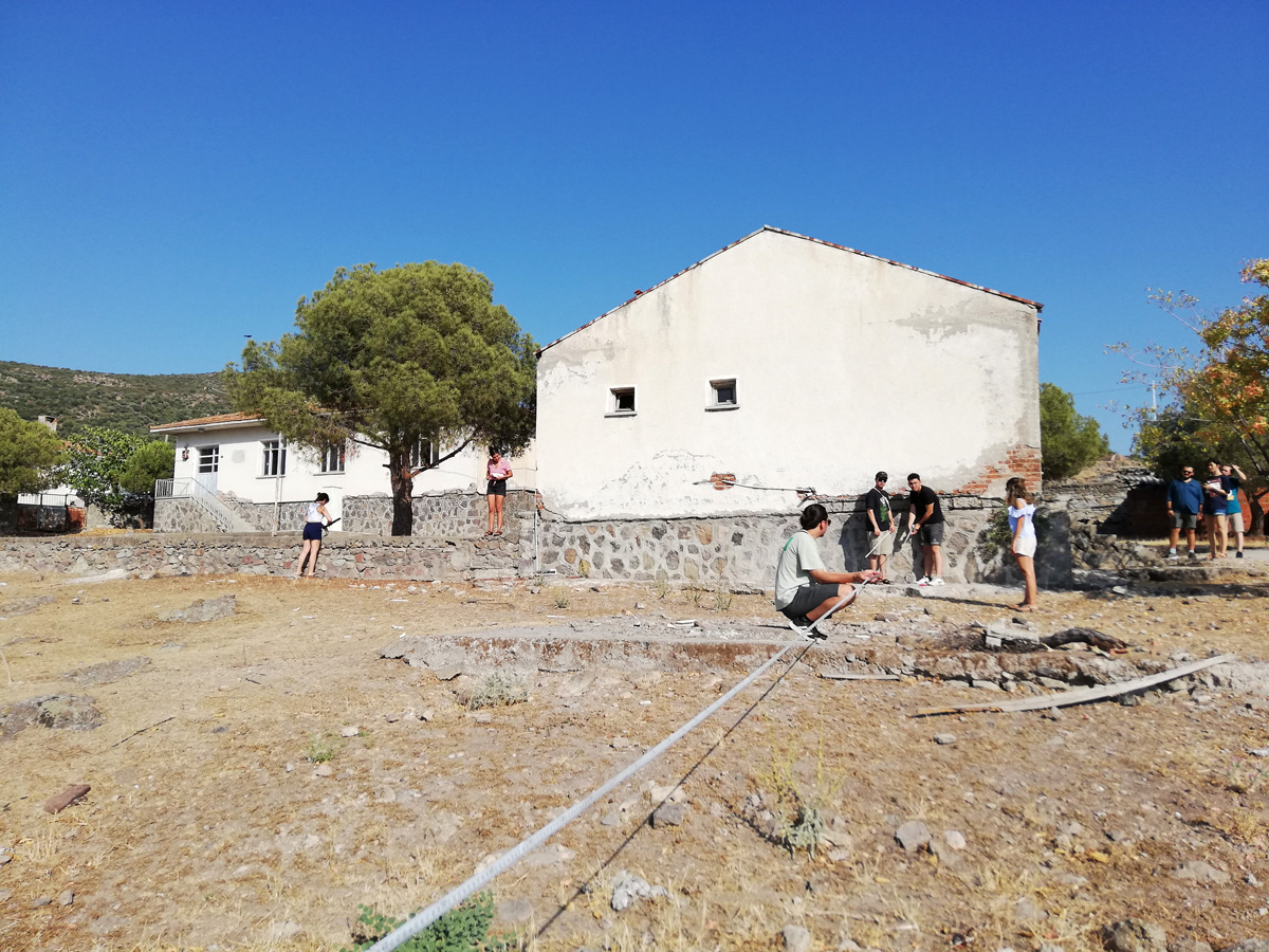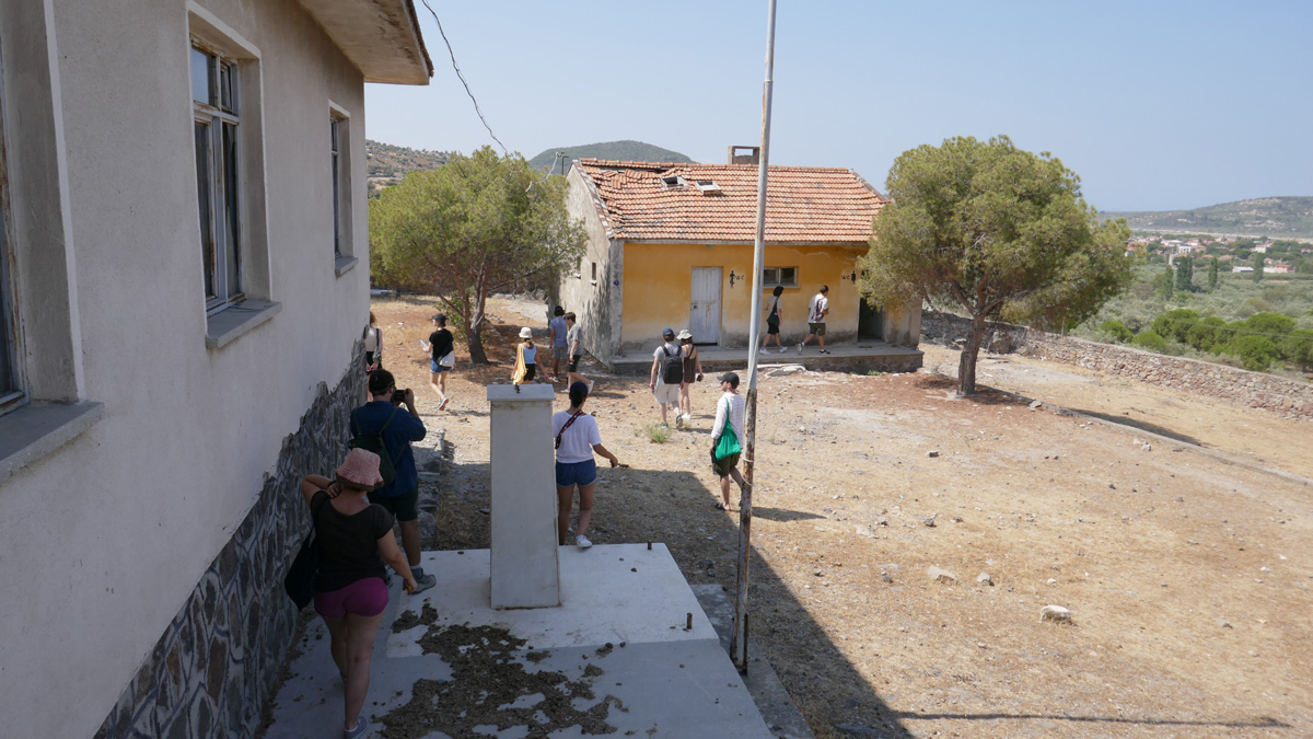 Eski ve yeni okul olarak adlandırılan atıl binaları canlandırma projemizin daha gerçekleştirilebilir ve sahiplenilebilir olması için, köy halkının hafızasında yer etmiş okulları en az müdahale ile yenilemeye karar verdik. Mevcut yapıların çoğunu güçlendirerek kullanmaya, fonksiyonlar için yetersiz kaldığı durumlarda ise ekleme yapmaya ve tuvalet binası gibi günümüzde amacını kaybetmiş ve fiziksel olarak iyi durumda olmayan yapıları da yıkmaya karar verdik. Köy dokusunda önemli bir yeri olan okulların taş duvarları bizim için potansiyeli yüksek mimari elemanlardı. İki okul arasındaki kopuk ilişkiyi güçlendirmek için bahçe duvarlarını bazı yerlerde eğrisel forma getirerek ve bahçenin içine yönlendirerek toplanma-sosyalleşme alanları oluşturduk. Ege’de yaz aylarının en önemli ihtiyacı olan gölgelik alanlar ise tasarımımıza altında oluşturduğu yarı açık oturma ve atölye alanları ile üst örtü olarak girdi.